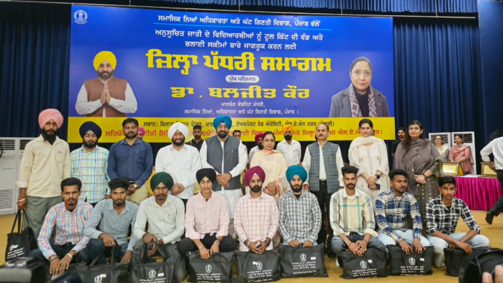 ਮੋਹਾਲੀ ਦੇ ਕਾਲਕਟ ਭਵਨ ਵਿਖੇ ਛੇ ਜ਼ਿਲਿ੍ਹਆਂ ਨੂੰ ਕਵਰ ਕਰਨ ਲਈ ਟੂਲ ਕਿੱਟ ਵੰਡ ਅਤੇ ਜਾਗਰੂਕਤਾ ਪ੍ਰੋਗਰਾਮ ਦੀ ਪ੍ਰਧਾਨਗੀ ਕਰਦਿਆਂ ਮੰਤਰੀ ਡਾ. ਬਲਜੀਤ ਕੌਰ ਨੇ ਮੌਜੂਦਾ ਸਰਕਾਰ ਦੇ ਸਮੇਂ ਦੌਰਾਨ ਹੋਈ ਵਿਦਿਅਕ ਪ੍ਰਗਤੀ ਬਾਰੇ ਦੱਸਦਿਆਂ ਕਿਹਾ, ‘‘ਪੰਜਾਬ ਨੇ ਅਨੁਸੂਚਿਤ ਜਾਤੀ ਅਤੇ ਹੋਰ ਵਿਦਿਆਰਥੀਆਂ ਨੂੰ ਸਿੱਖਿਆ ਵੱਲ ਹੋਰ ਉਤਸ਼ਾਹਿਤ ਕਰਨ ਦੇ ਉਦੇਸ਼ ਨਾਲ ਵਜ਼ੀਫ਼ੇ ਵੰਡਣ ਵਿੱਚ ਕੌਮੀ ਪੱਧਰ ’ਤੇ ਦੂਜਾ ਸਥਾਨ ਪ੍ਰਾਪਤ ਕੀਤਾ ਹੈ। ਭਗਵੰਤ ਮਾਨ ਸਰਕਾਰ ਦੇ ਕਾਰਜਕਾਲ ਦੌਰਾਨ ਲਗਭਗ 10 ਲੱਖ ਵਿਦਿਆਰਥੀਆਂ ਨੇ ਆਪਣੇ ਮਨਚਾਹੇ ਖੇਤਰਾਂ ਵਿੱਚ ਸਿੱਖਿਆ ਪ੍ਰਾਪਤ ਕੀਤੀ ਹੈ।’’
